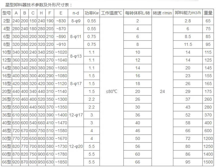 2、星型卸料閥可采用鑄鐵、鑄鋼、不銹鋼、鈦鋼等多種材質(zhì),法蘭口可為方形或圓形等多種結(jié)構(gòu)形式,滿足用戶
